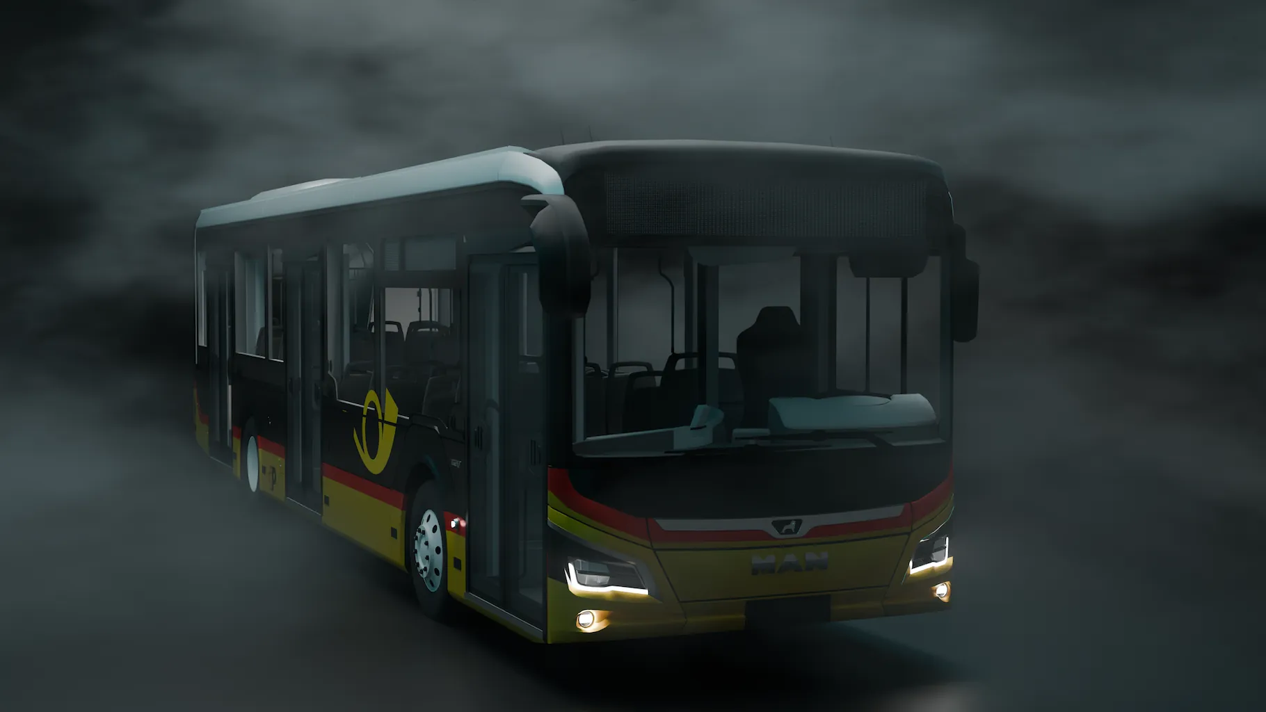 Bus Linien- & Shuttleverkehr mit echten Systemen: Haltestellenmanagement, Pünktlichkeit, Fahrgastfluss. • Echte Fahrzeuglackierungen (Postauto, AutoBus AG Liestal...) • ATRON, FELA, Zelisko integriert • Stadt, Land & Industrie